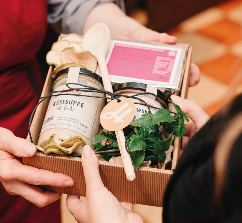 Wir stellen individuelle Präsentpakete zusammen – liebevoll verpackt und mit ganz viel Geschmack. In jedem Paket steckt Handarbeit und Regionalität: feine Weckgläser aus unserer eigenen Produktion und ausgewählte Feinkost von unseren regionalen Partnern. So wird Schenken zu etwas Besonderem!