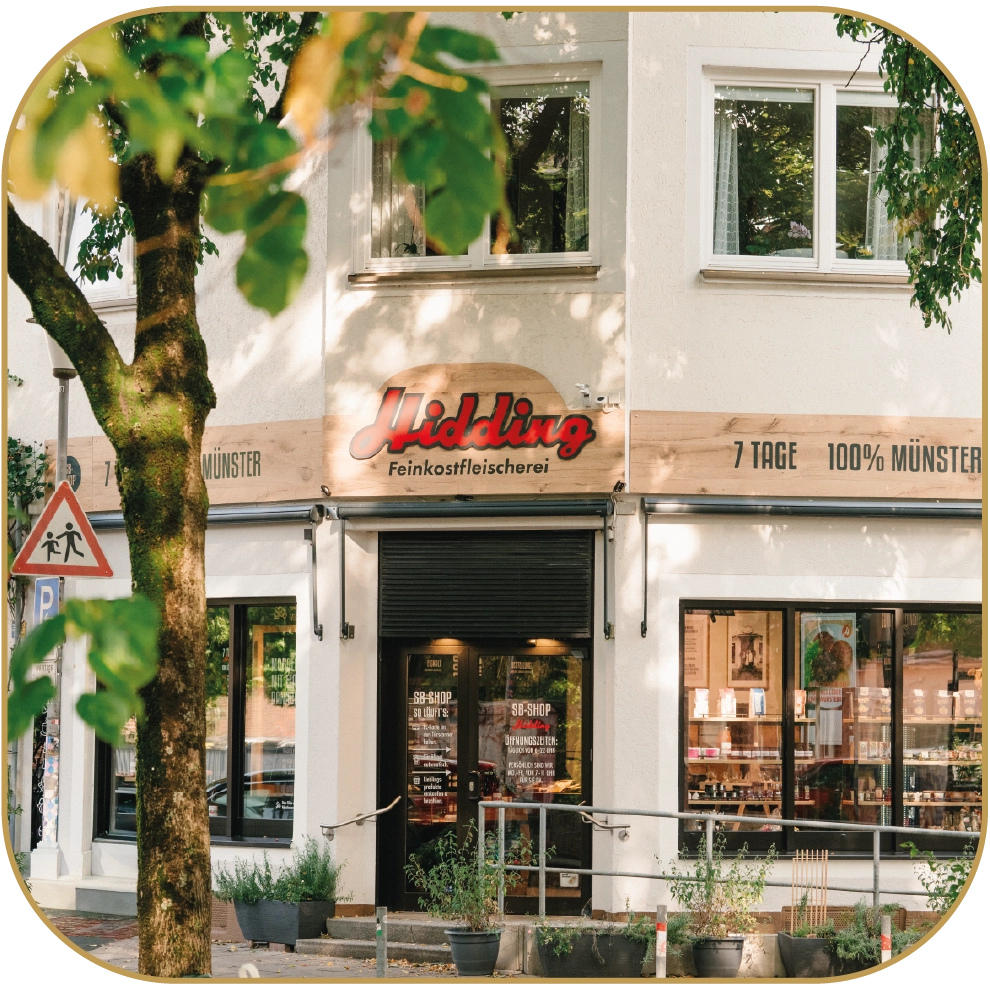 Ob spontan am Sonntag oder spät am Abend, du findest unsere Produkte an mehreren Standorten in Münster und Umgebung. So bleibt Hidding immer in deiner Nähe, wann immer du Lust auf Genuss hast.